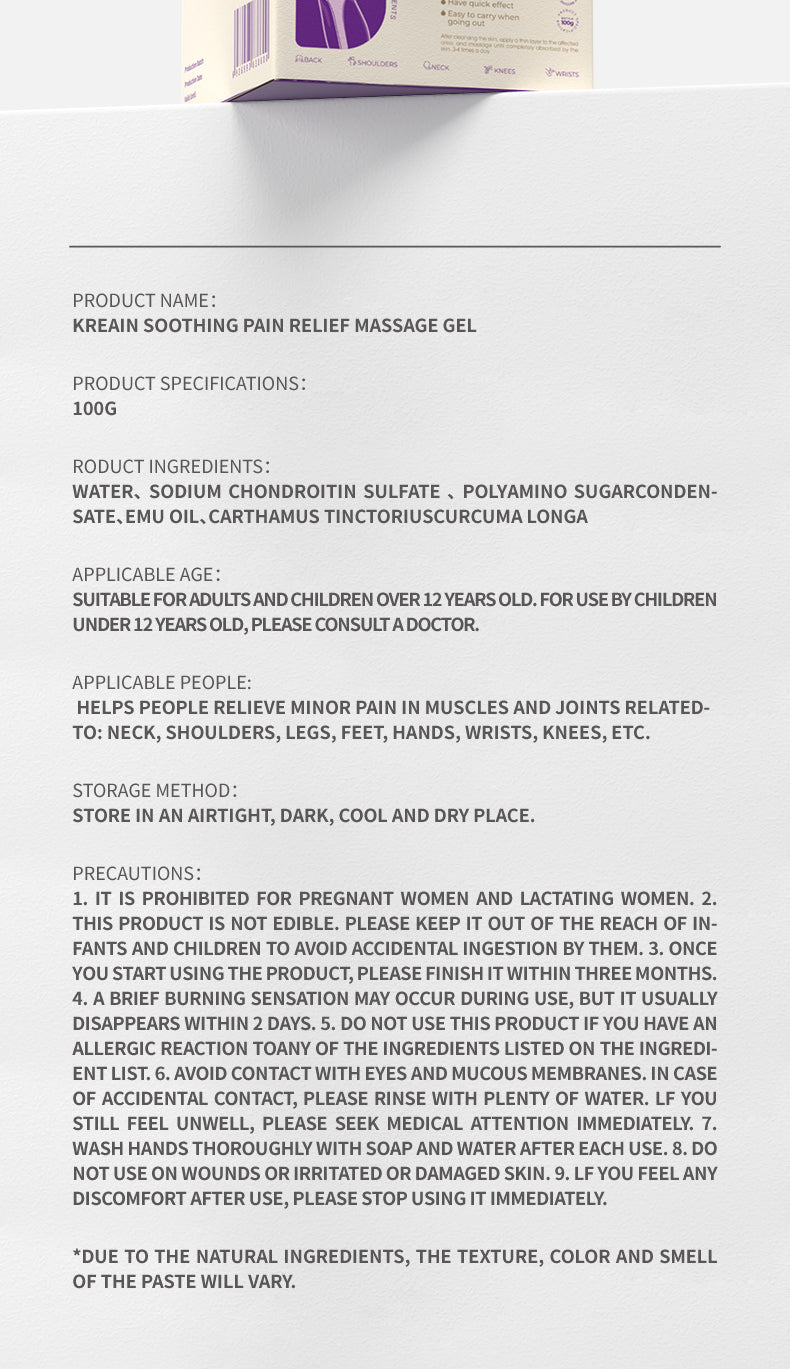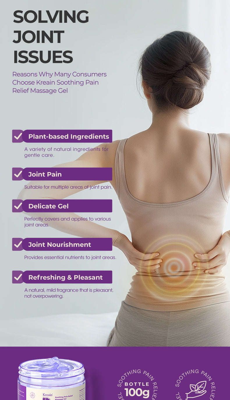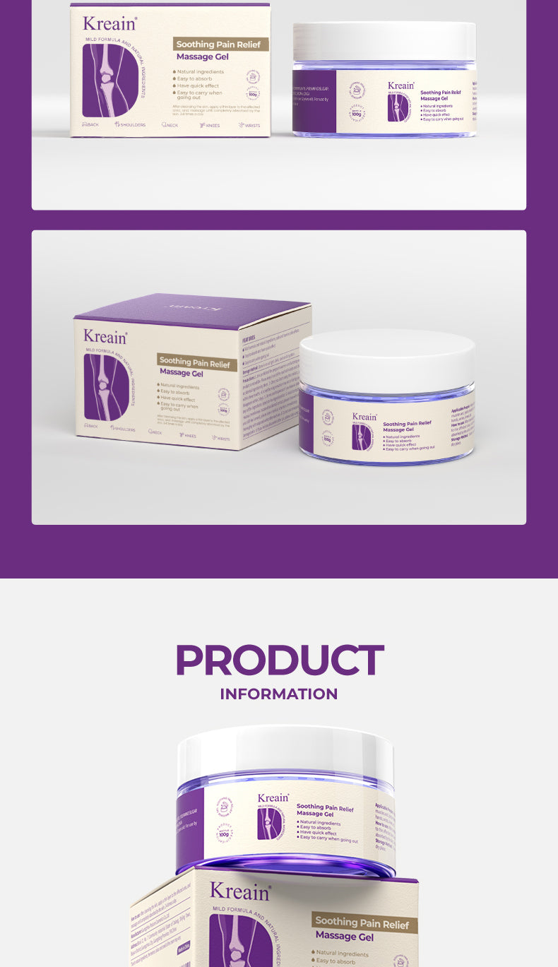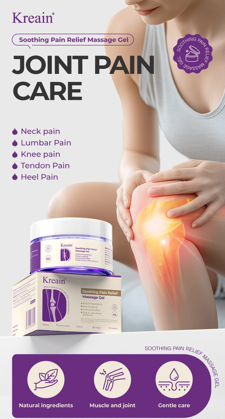 • Kreain Rapid Relief Muscle Therapy Gel – Soothes knees, lumbar, neck, hands, and feet; contains boswellia, glucosamine, and collagen